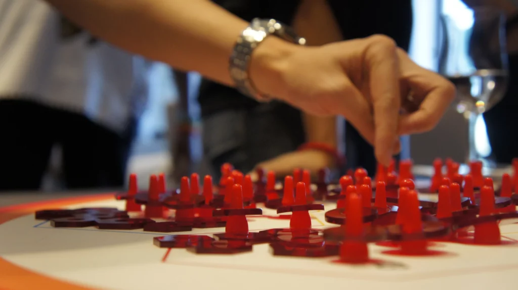 JŚ: Są gry krótkie, jeśli mamy do czynienia z jakimś treningiem kompetencji, który możemy przenieść na krótkie ćwiczenie, to może to być gra godzinna. Ale są też rozbudowane symulacje, w których ludzie grają przez dwa dni – przez dwa dni zarządzają wirtualną, w tym przypadku odtworzoną na planszy, firmą. Podejmują decyzje w czasie rzeczywistym, natomiast widzą konsekwencje z rundy na rundę, co się wydarzyło: podejmuję decyzję w tym roku [przyp. red. w tej grze runda jest odpowiednikiem roku], widzę, co się wydarzy w następnym roku. W grze mamy więc skondensowany czas: mogę przeżyć w ciągu trzech godzin czy dwóch dni, jeśli mamy rozbudowaną grę, kilka lat funkcjonowania firmy. I taka jest idea, żeby w takim doświadczeniu spłaszczyć ludziom czas – że możemy w ciągu krótkiego czasu zobaczyć konsekwencje naszych działań w przyszłości.