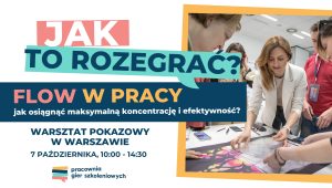 dokładna data wkrótce – POZNAŃ – SPOTKANIE STACJONARNE Warsztat pokazowy: FLOW w pracy – budowanie zaangażowania w zespole Pracownia Gier Szkoleniowych gra: Galeria Perspektyw trener: Paweł Krzywicki
