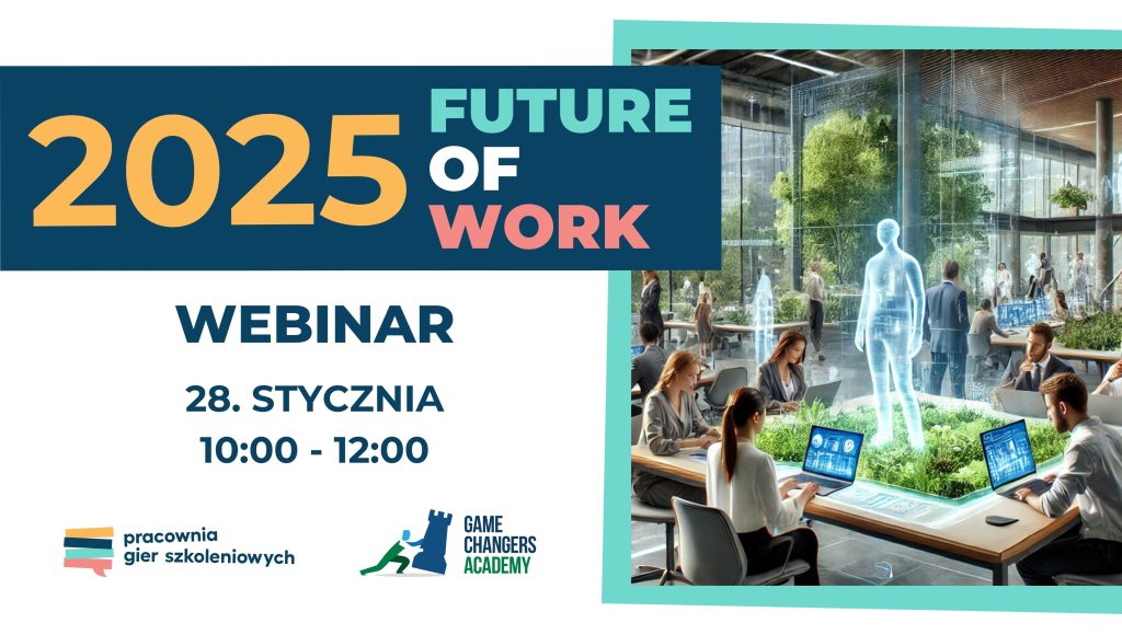 Pracownia Gier Szkoleniowych wraz z Game Changers Academy zapraszają na wyjątkowe spotkanie online – “Future of work – Przegląd trendów 2025″.